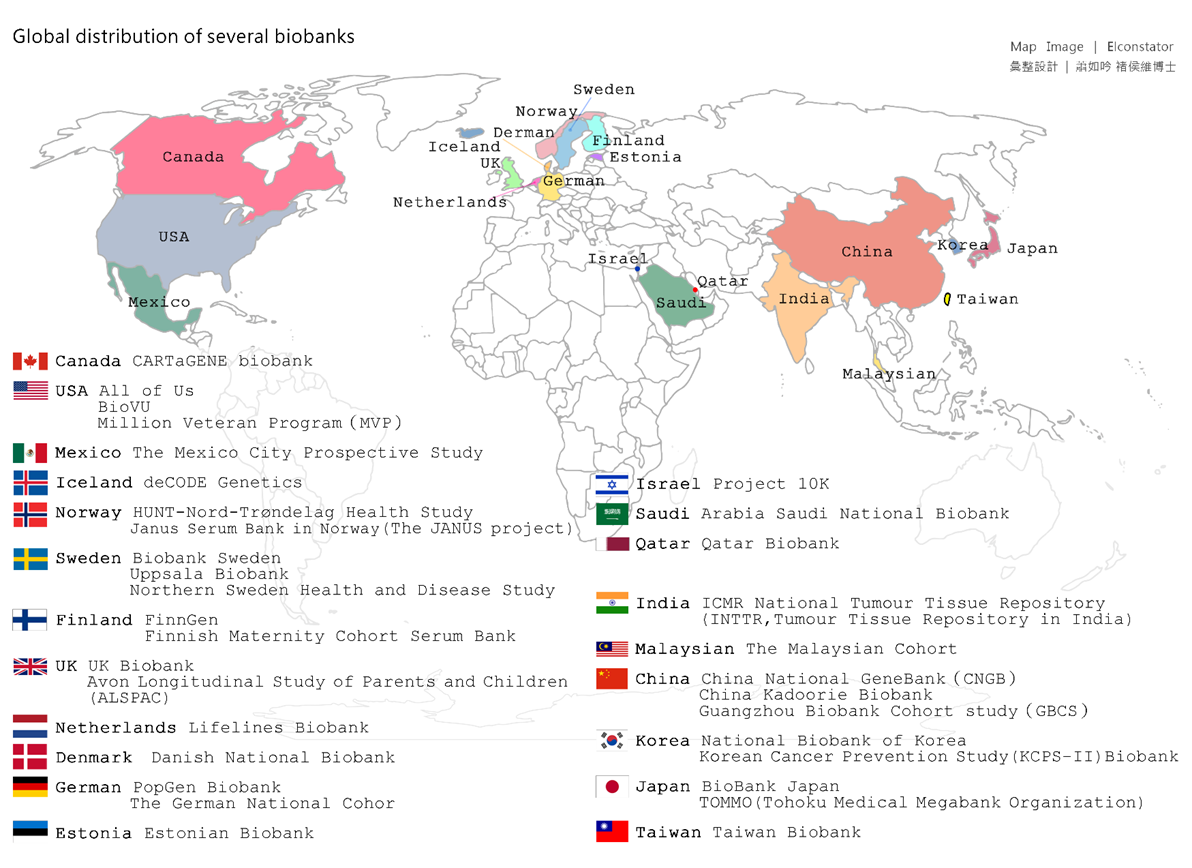 圖|世界各大知名Biobank分佈地圖